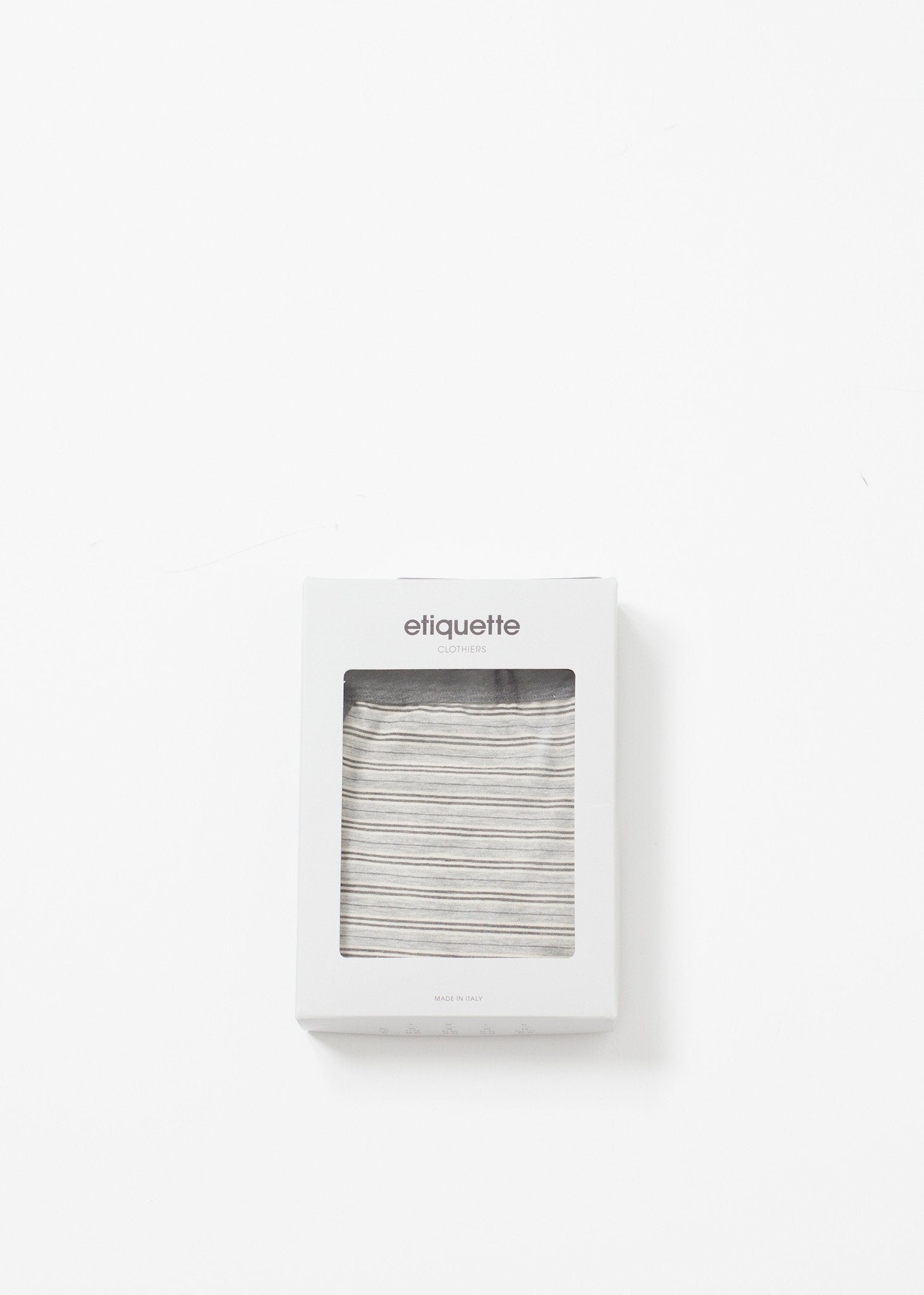 This prewashed cotton brief is composed of the finest gauge for the softest materials. Offers stretch and softness in wear. Elastic waistband for ease. Etiquette. Color Heather Grey. 95% Cotton, 5% Elastane. Made in Italy.